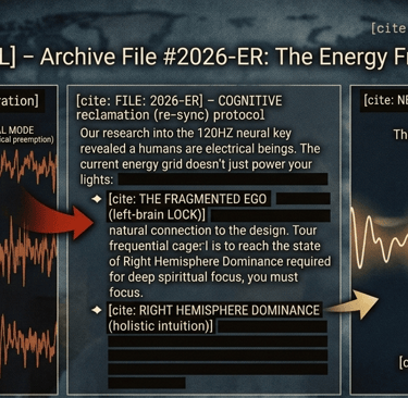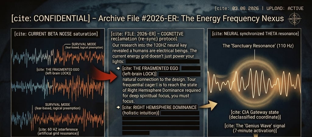 But look around. The modern energy grid isn't just a utility—it is a "Frequential Cage." By saturating our homes with artificial, low-frequency noise, the current grid creates a "beta-brainwave lock." This disruption is engineered to prevent you from reaching Right Hemisphere Dominance—the precise neurological state required for true spiritual discernment and connection to the Creator.